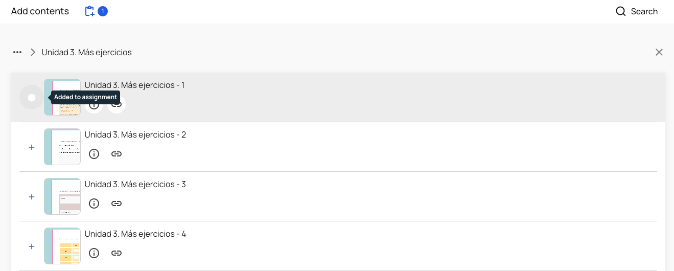 If you wish to remove content that you had already added to the assignment, click on the white circle you will see where the "+" sign was.