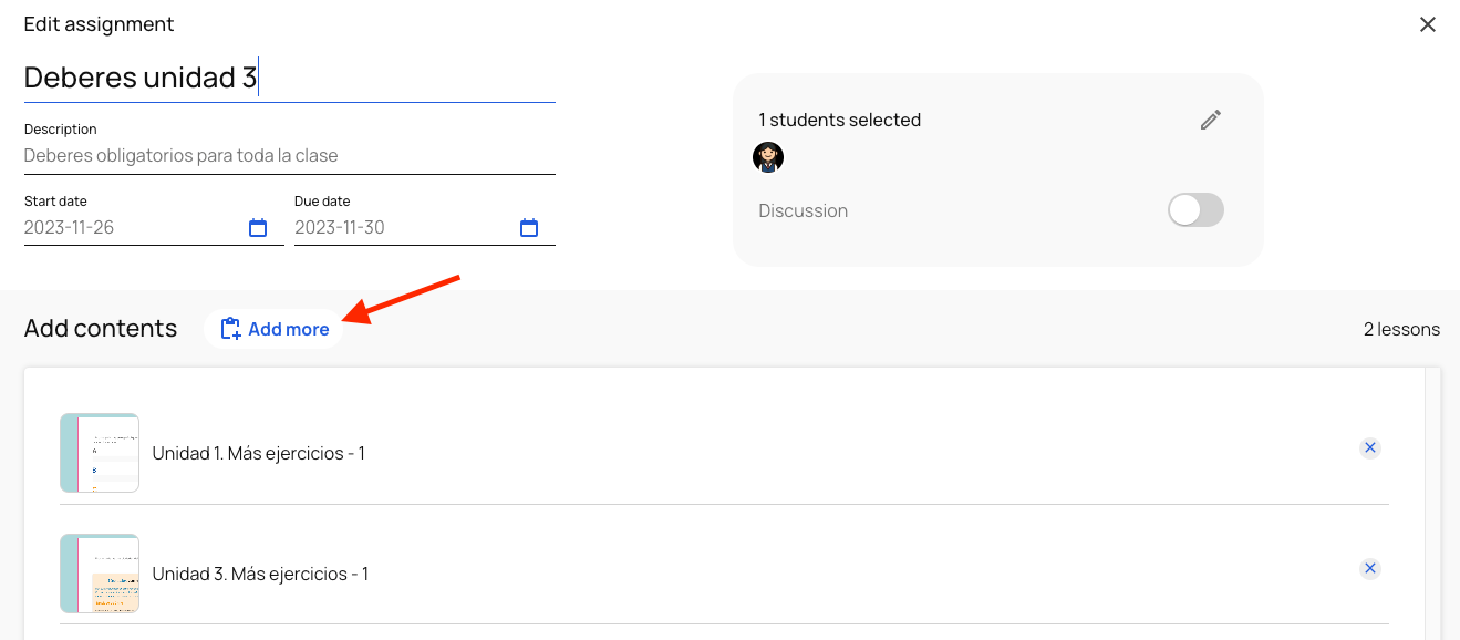 If you want to add more activities from the same or another textbook, click on "Add more".