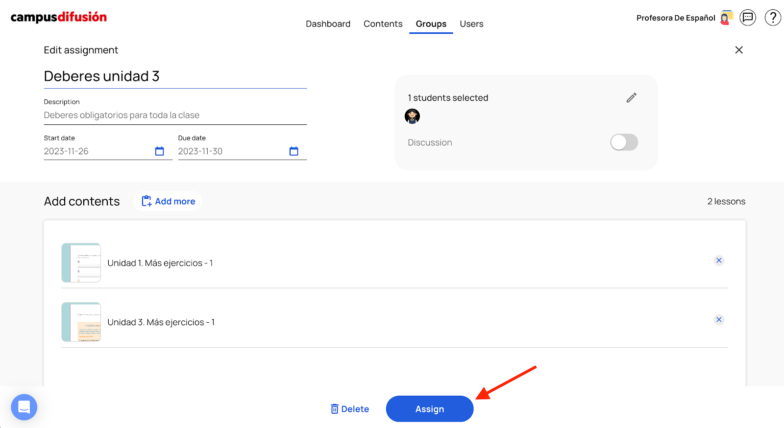 1) Access the group to which the student or students you want to assign it belong.