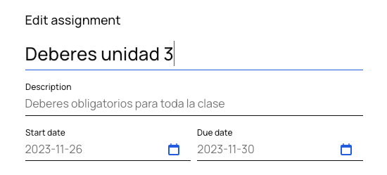 4) Write the name and description of the assignment and select its start and due dates.