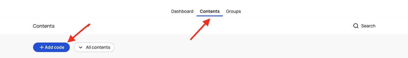 To activate the content, click on the Contents tab, then on the blue + Add code button and enter the code.